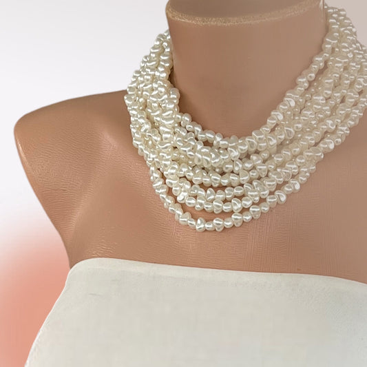 Handmade, Multi strand Rice Shape Freshwater Pearl Choker