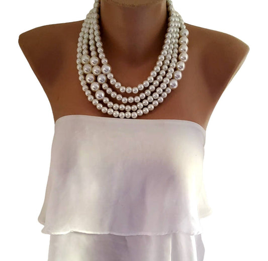 Çok Sıralı Büyük İnci Kolye – Göz Alıcı El Yapımı Tasarım